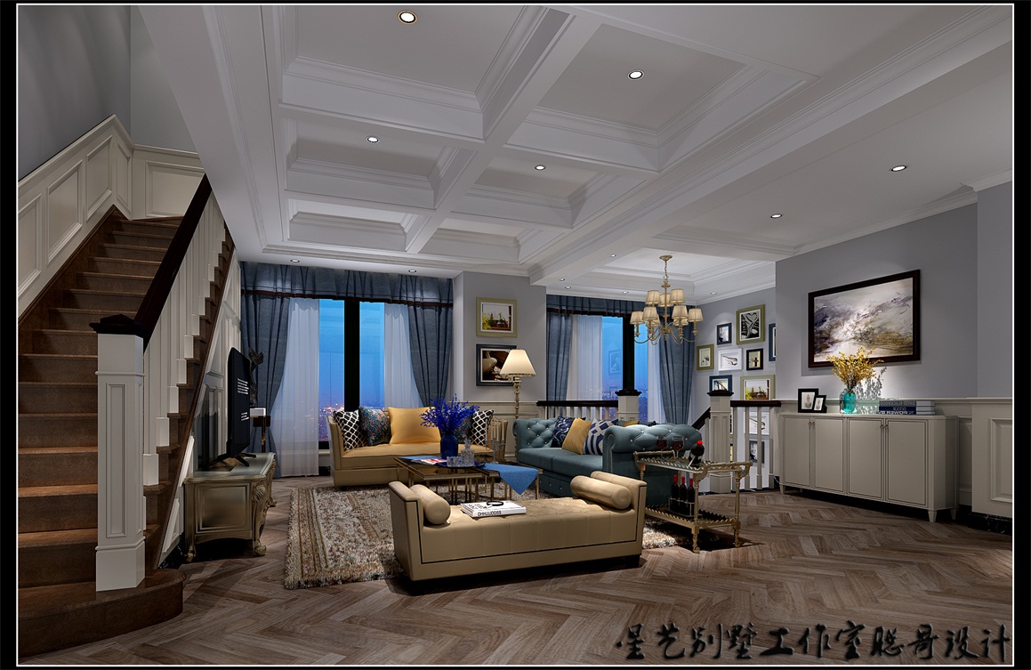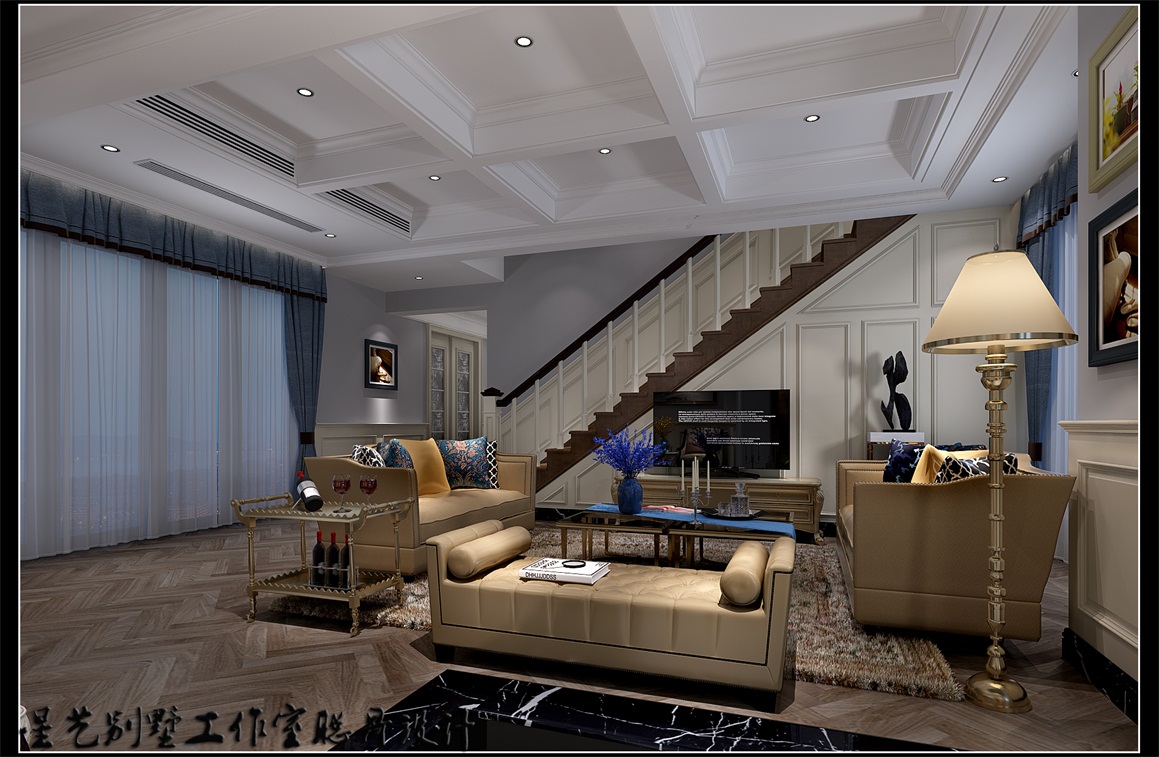 本案是一個小二層復式,業主是一對年輕夫婦,業主要求時尚,奢華,設計上業主要求不要復雜的造型,經過雙方多次溝通,從輕奢小美式入手,大部分采用護墻板、木立板,美式的吊頂,都采用淺色為主,使每個房間達到精致,奢華效果。
